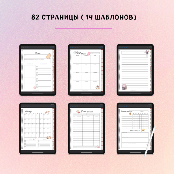 Цифровой недатированный планер для планшетов «Харизма». Красивый недатированный женский ежедневник. Включает в себя все сферы жизни. Начните планировать свою жизнь сегодня! Используйте голову для генерирования идей и креатива, а не для хранения напоминаний.
